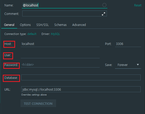 연결하고자 하는 Database 정보를 Host, User, Password, Database 순서대로 입력합니다.