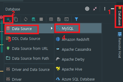 1번 우측의 Database 탭을 엽니다.