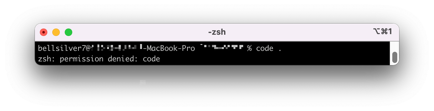 터미널에서 code . 명령으로 vscode 를 실행하려고 할 때