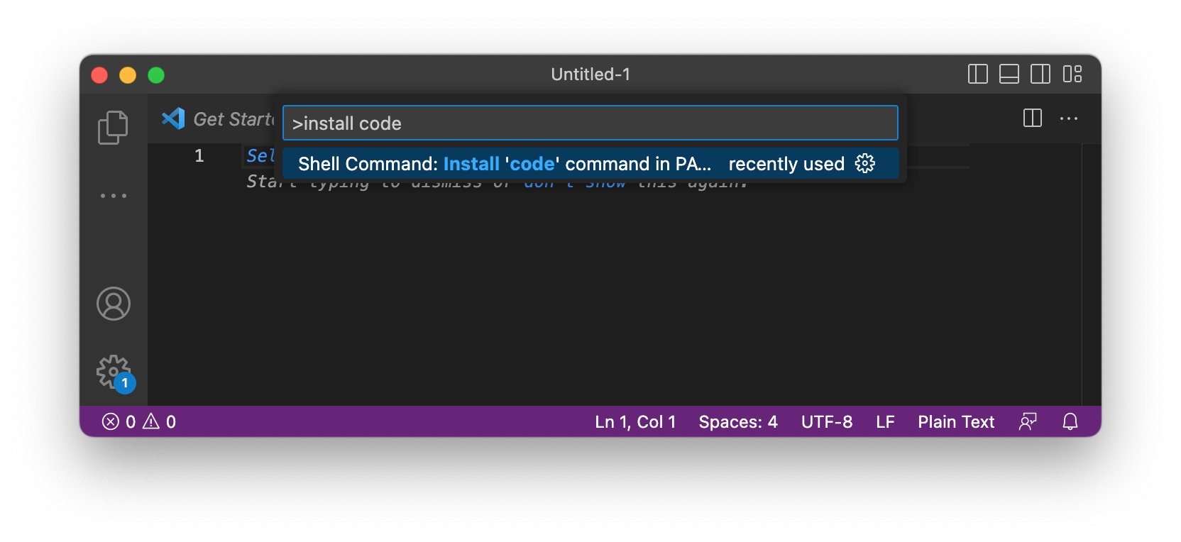command + shift + p 단축키로 팔레트를 열어